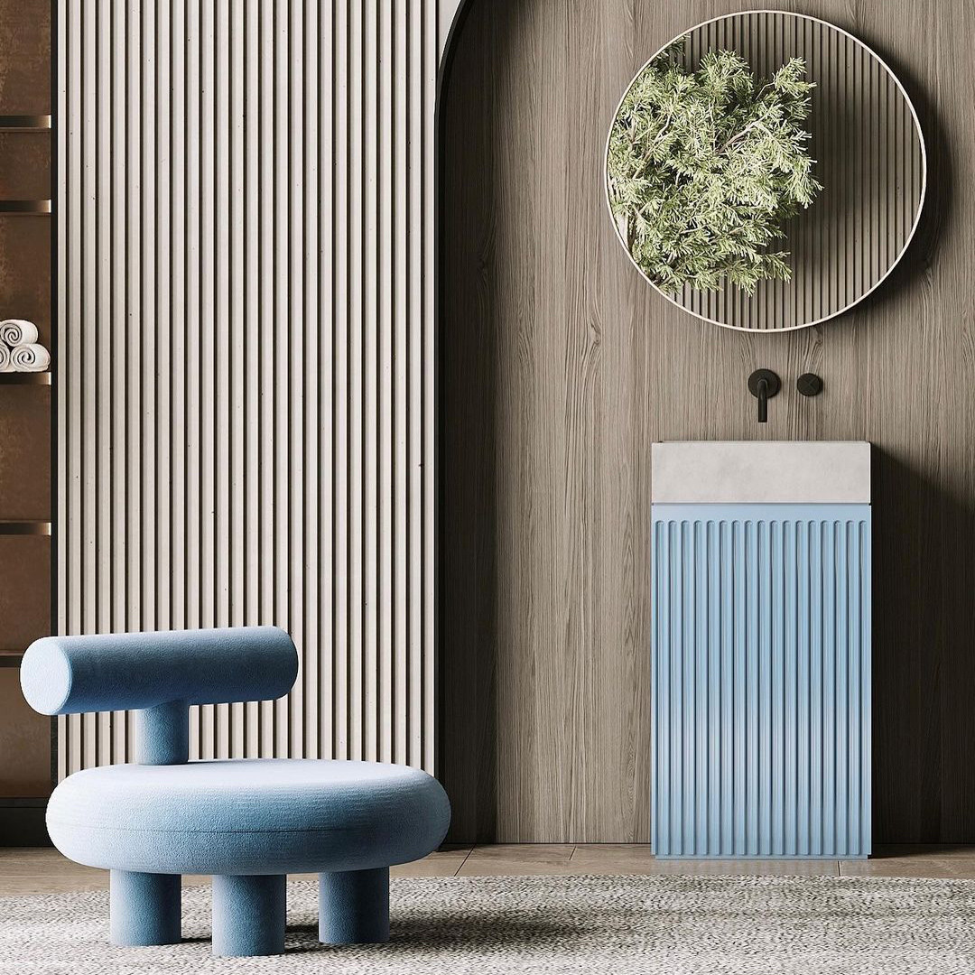Fluted finishes provide an exciting take on traditional texture. Drawing influence from ancient architectural styles, fluting promotes a play of light and interesting shadow compositions. This effect of fluidity enhances the item’s elegance and rhythm within its space. Fluting can be seen in vanities, basins and bathroom furniture.