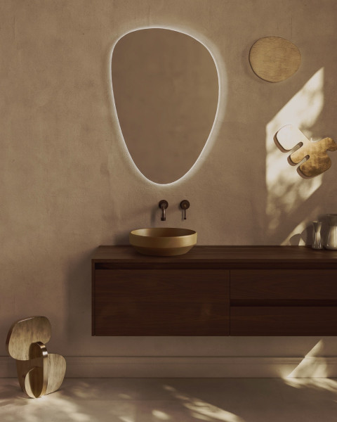 This style embraces gentle, neutral colour palettes paired with natural textures such as timber, stone, clay and plaster, all materials that feature in the manufacture of vanities, basins, baths and accessories. Sharp lines are replaced with curves: think rounded vanity units, softly shaped basins and pill or arch-shaped mirrors. These forms introduce a sense of flow and comfort while maintaining a clean, uncluttered feel.