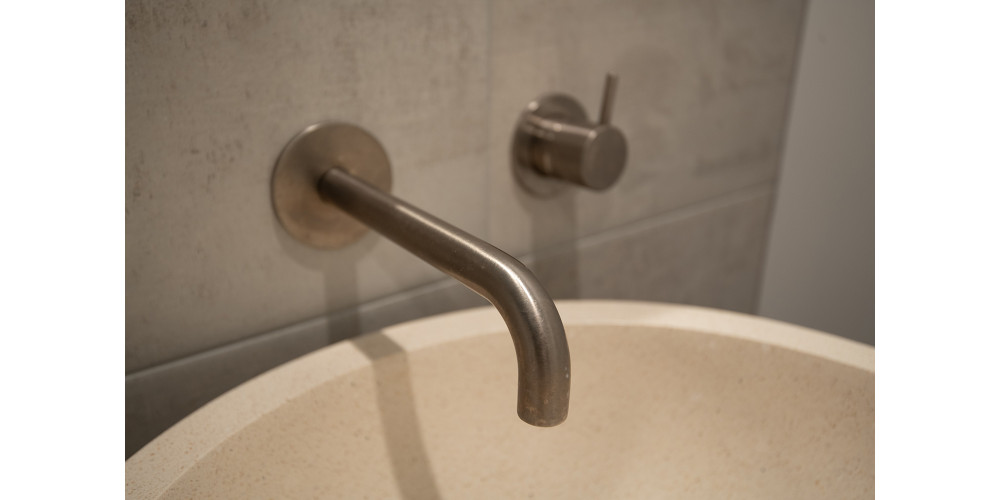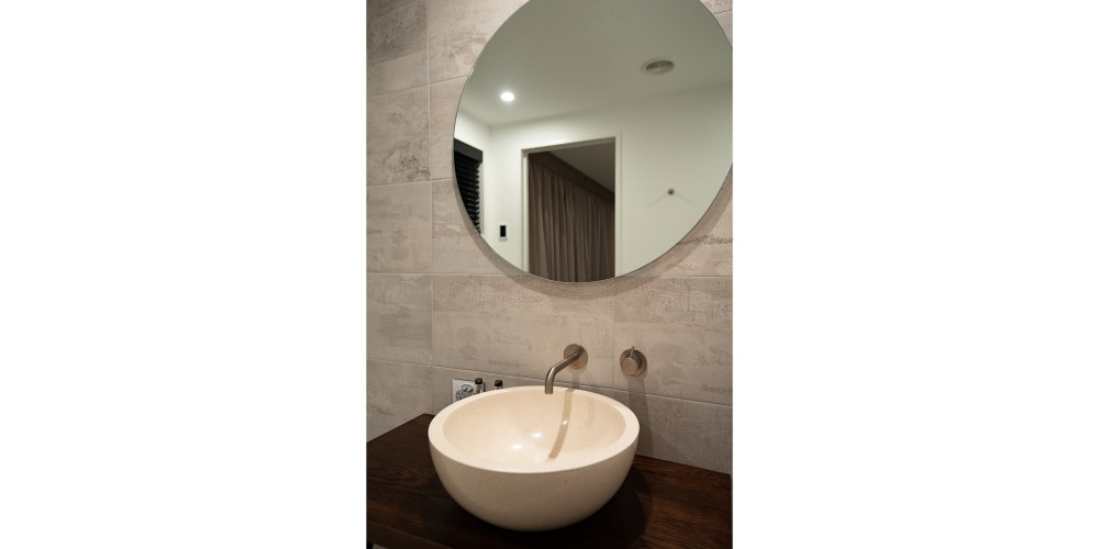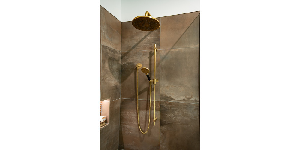 In the powder room aged brass tapware complimented the owners existing mirror and Brushed Brass in the ensuite matched her already sourced basins. The same tapware in aged iron features in the laundry and matching gooseneck kitchen mixers with pull-out sprays have proven useful in the kitchen and scullery.